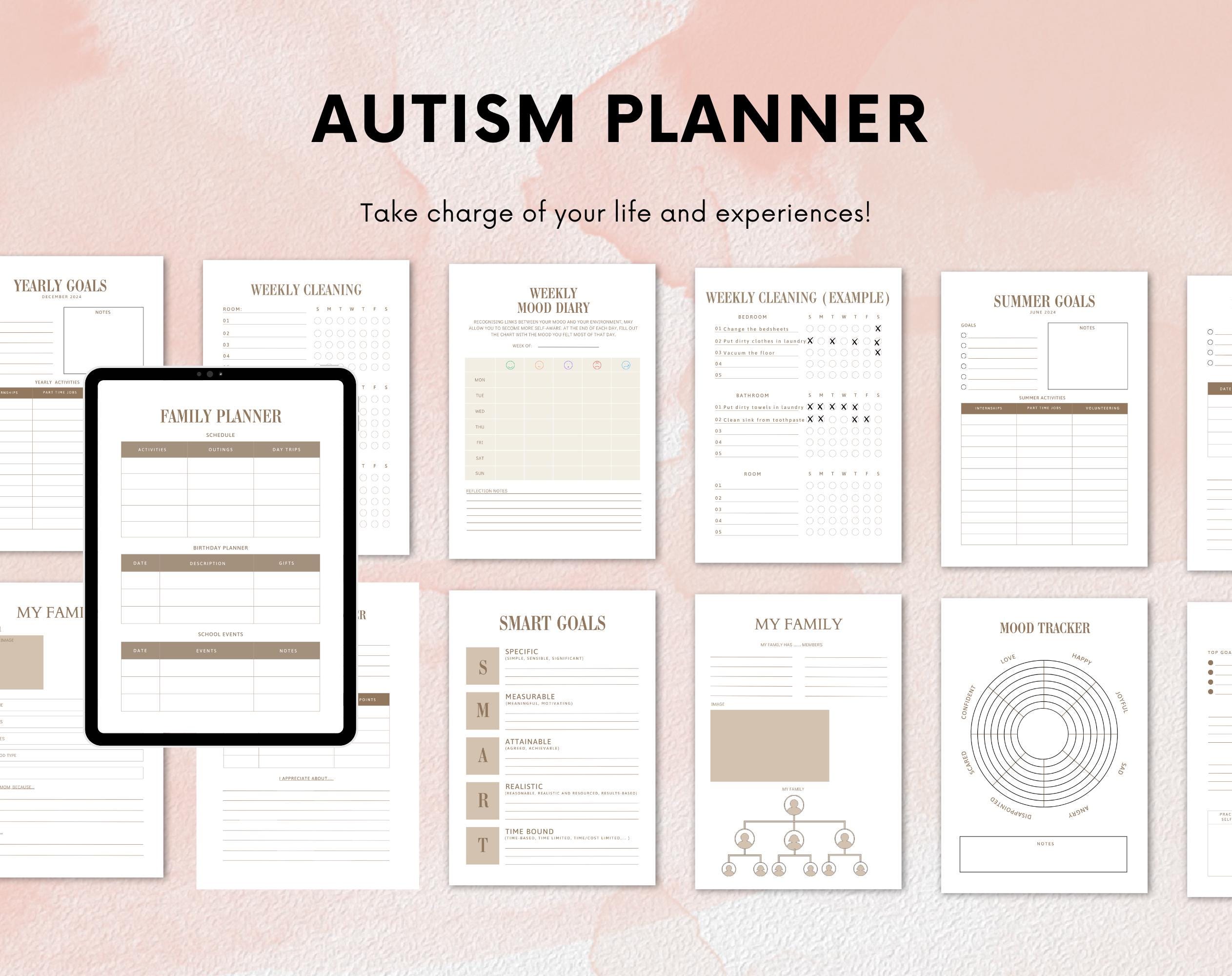 Empower yourself or your child with our meticulously designed Autism Planner, tailored to support the unique needs of kids with autism and neurodivergent individuals. This planner is more than just an organizer—it’s a comprehensive tool that aids in daily activities, therapy, and emotional well-being.