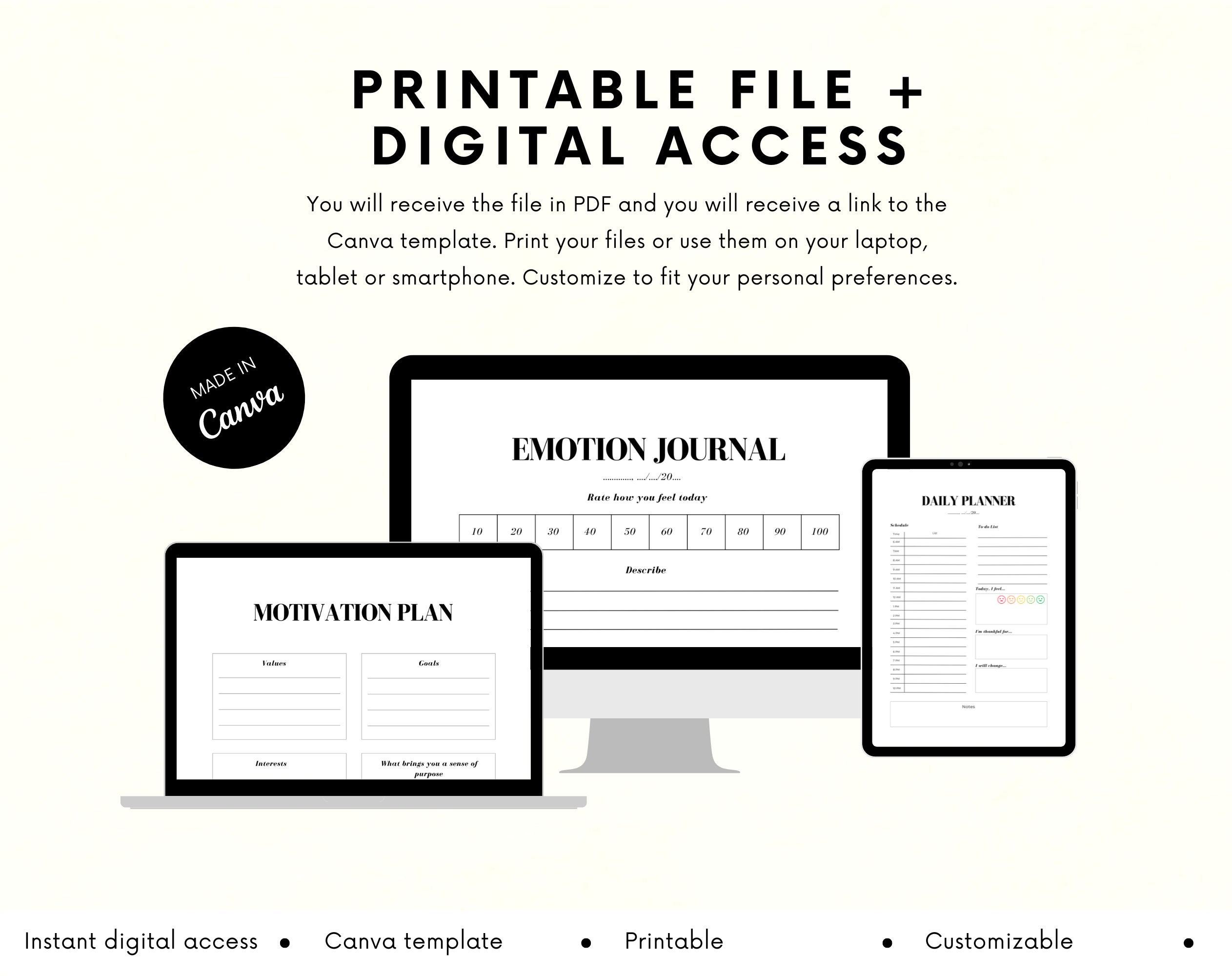 ♦ You will receive a PDF file containting the link providing you access to the Canva Template.