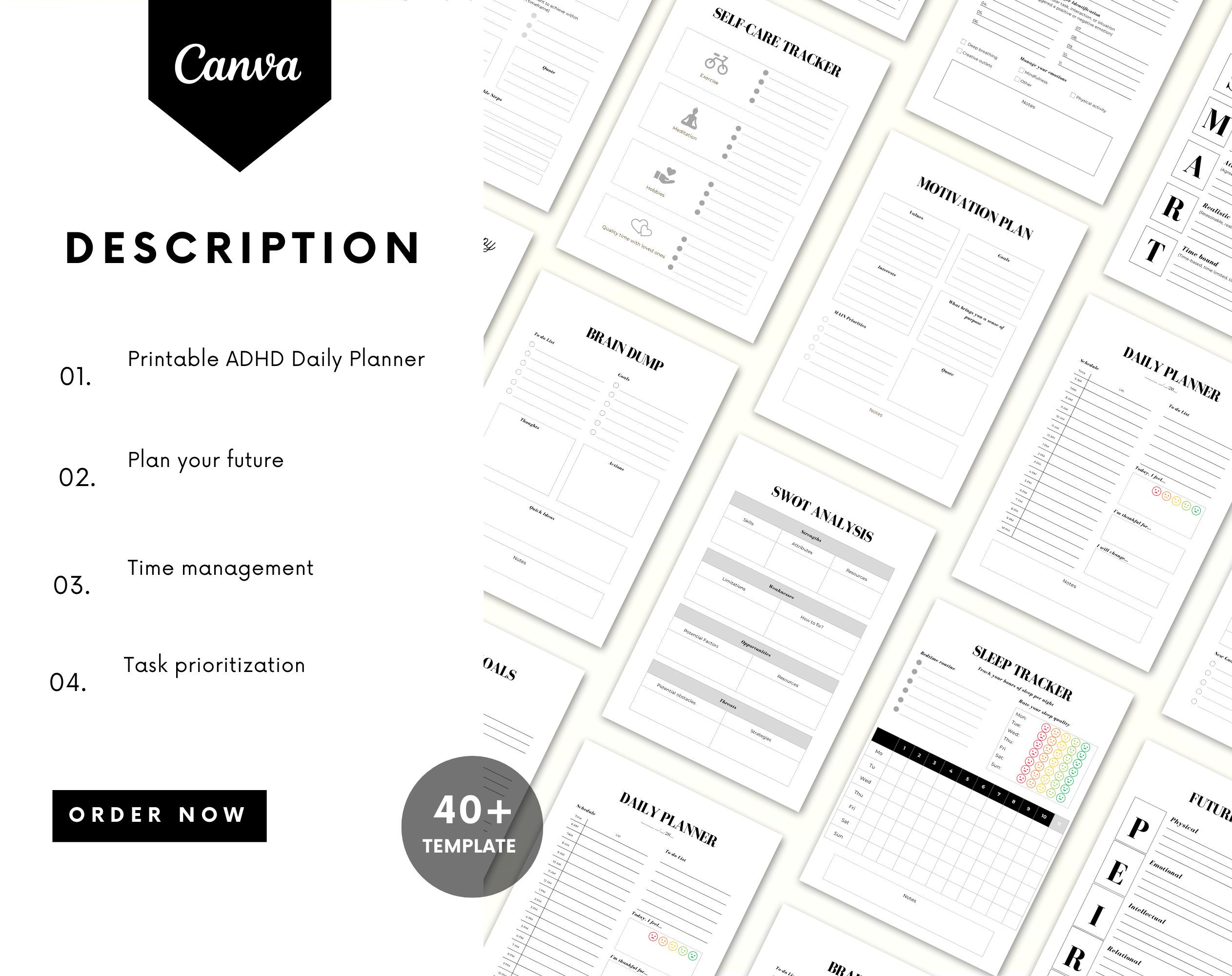 The ADHD Daily Planner for Adults contains 40+ pages